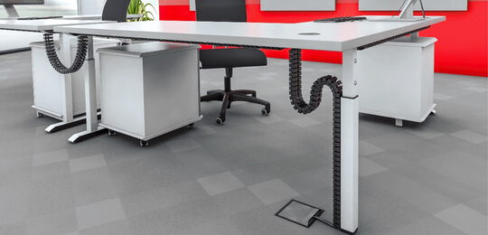 Laden Sie sich hierunser gesamtes Kabelmanagement-Programm mit allen Kabelketten, Tischanbindungen, Fußplatten, Adaptern, Kabeldurchführungen und Kabelbefestigungen herunter.